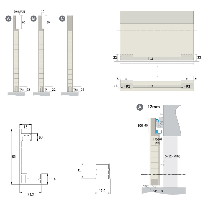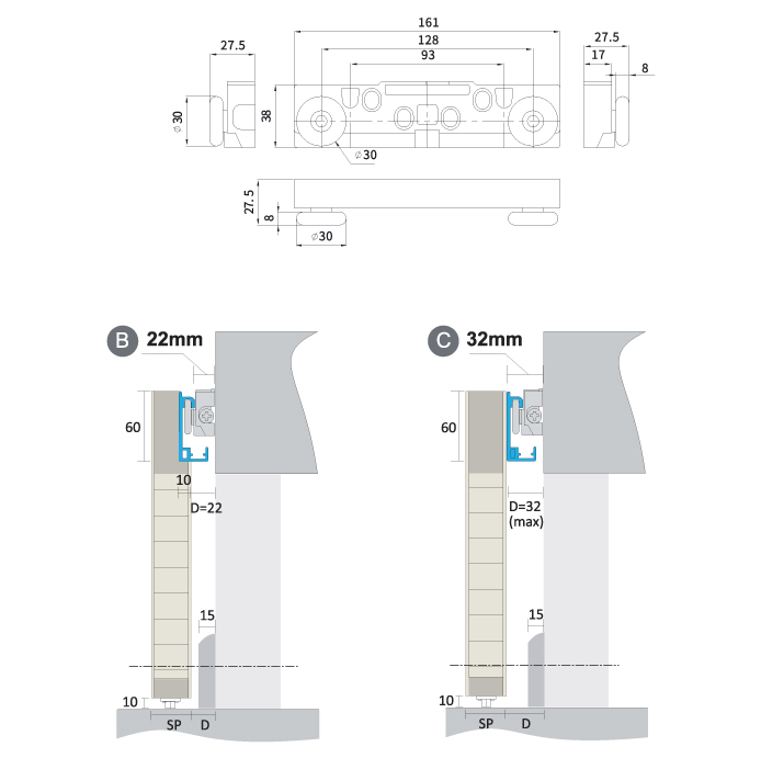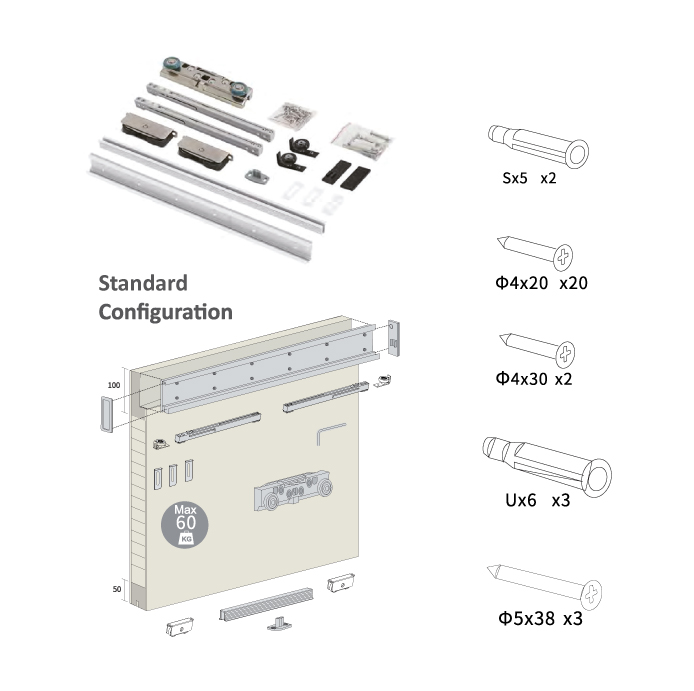 Sliding Track : Aluminium, Anodized Hanging Roller : Zinc Alloy, SN