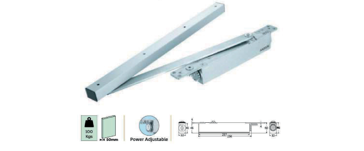 Door Closer with Pelmet Arm for Style Door, Door Capacity : 100kg