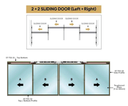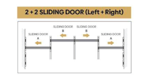 - - Telescopic Sliding System for Four Door, Three Doors, Two Doors and Single door.